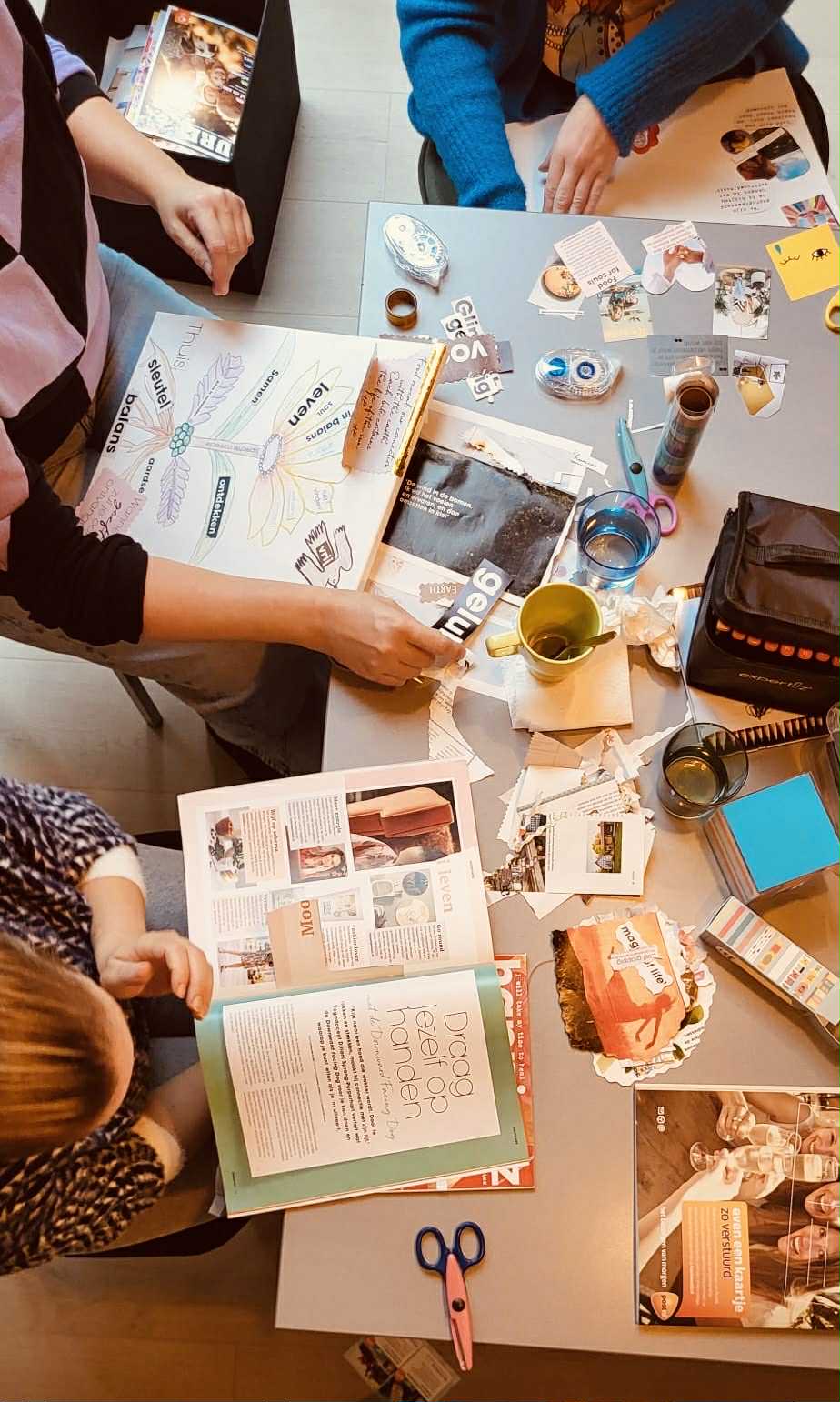 We werken met beelden, muziek, ons lichaam, onze intuïtie, journaling, spel, ...